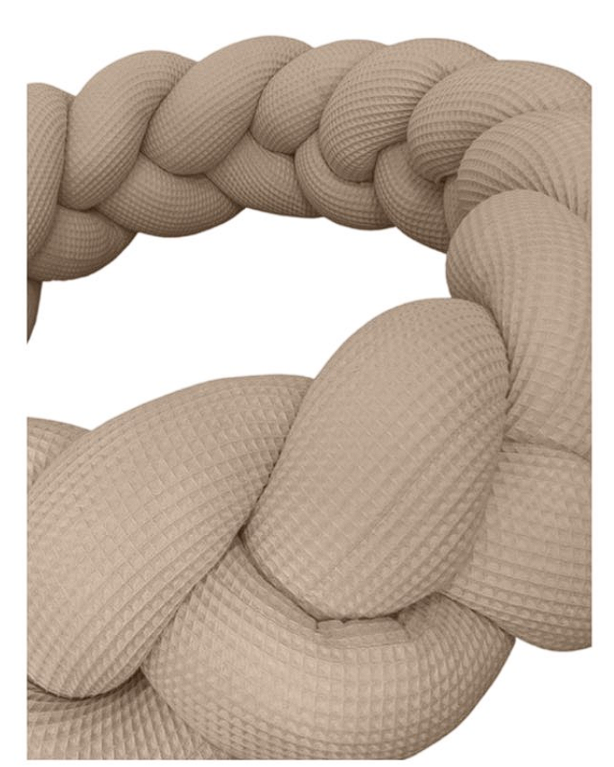 Pletený cop je moderní alternativou tradičního mantinelu. Skládá se ze tří podstivě plněných pramenů, které nepropustí žádný průvan a chlad do postýlky vašeho miminka. Každý pramen je vyroben z pevné, ale nadotek příjemné 100% bavlněné vafloviny, která splňuje veškeré zákonem stanovené normy pro výrobky určené dětem od narození.