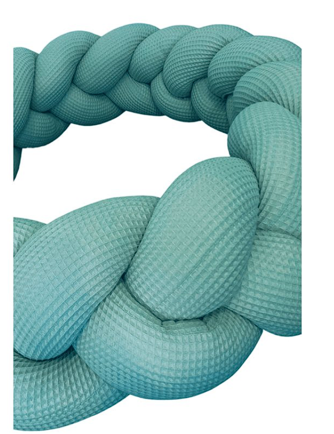 Pletený cop je moderní alternativou tradičního mantinelu. Skládá se ze tří podstivě plněných pramenů, které nepropustí žádný průvan a chlad do postýlky vašeho miminka. Každý pramen je vyroben z pevné, ale nadotek příjemné 100% bavlněné vafloviny, která splňuje veškeré zákonem stanovené normy pro výrobky určené dětem od narození.