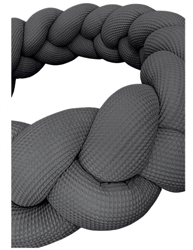 Pletený cop je moderní alternativou tradičního mantinelu. Skládá se ze tří podstivě plněných pramenů, které nepropustí žádný průvan a chlad do postýlky vašeho miminka. Každý pramen je vyroben z pevné, ale nadotek příjemné 100% bavlněné vafloviny, která splňuje veškeré zákonem stanovené normy pro výrobky určené dětem od narození.