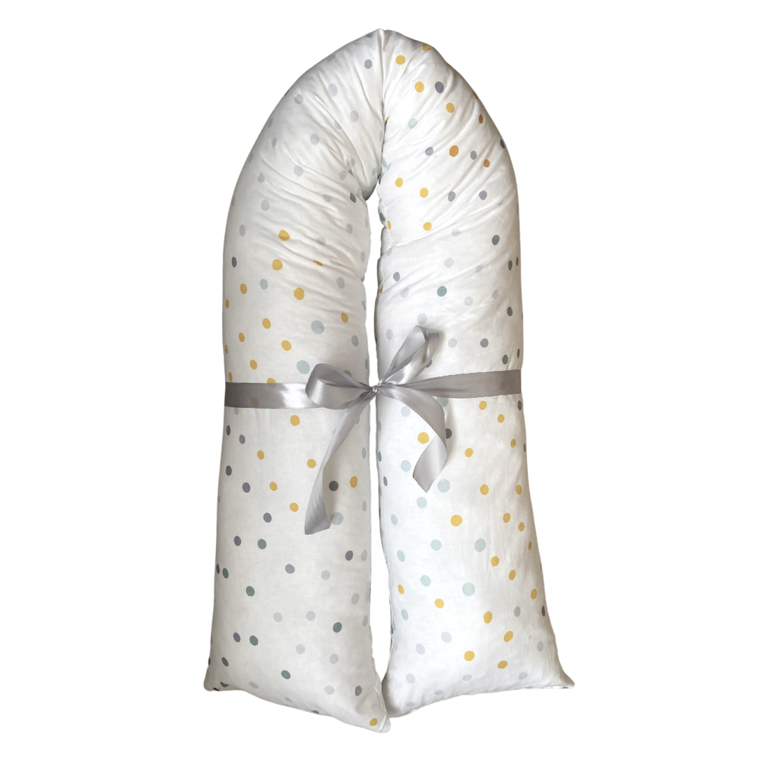 Těhotenský polštář nepravidelné puntíky žluto-mint šedé